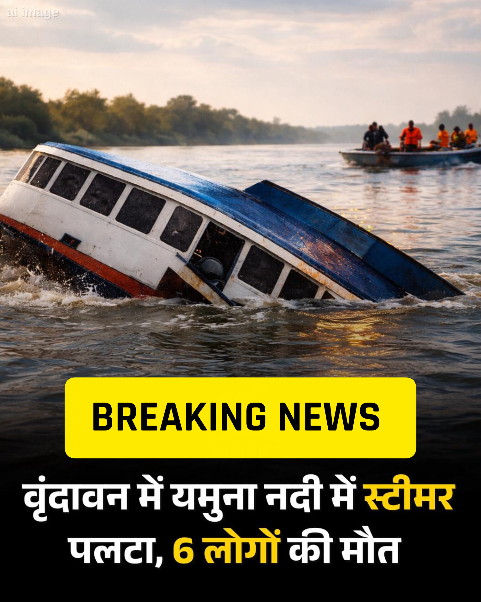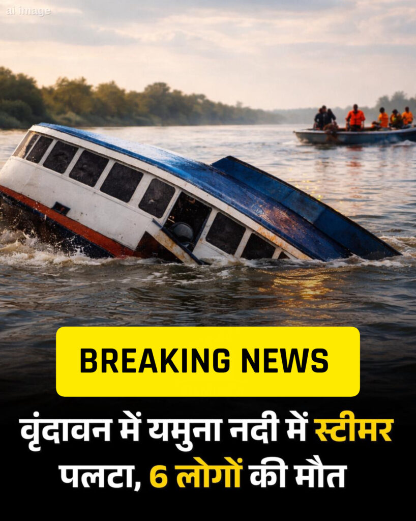 मथुरा/वृंदावन।धर्मनगरी वृंदावन के प्रसिद्ध केशी घाट पर शुक्रवार दोपहर एक हृदयविदारक घटना सामने आई है। यमुना नदी में करीब 25 से 30 श्रद्धालुओं से भरा एक स्टीमर अनियंत्रित होकर पलट गया। मथुरा जिला प्रशासन ने अब तक इस दुर्घटना में 6 लोगों की मौत की आधिकारिक पुष्टि की है, जबकि कई लोग अभी भी लापता बताए जा रहे हैं।